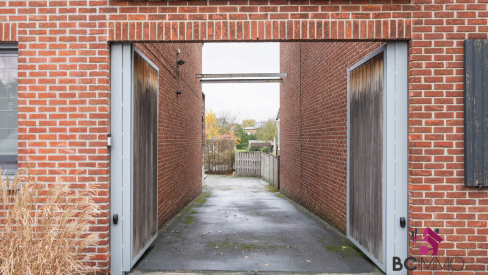 Naast de woning bevindt zich een privatieve doorgang, ideaal om met de auto tot achteraan te rijden of de garage te bereiken.