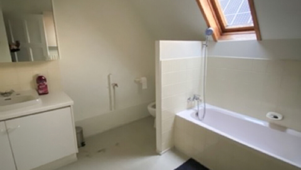 De eerste verdieping biedt een leefruimte met keuken, toilet en badkamer. Op de bovenverdieping bevindt zich een slaapkamer.