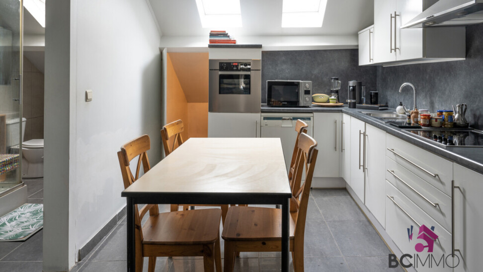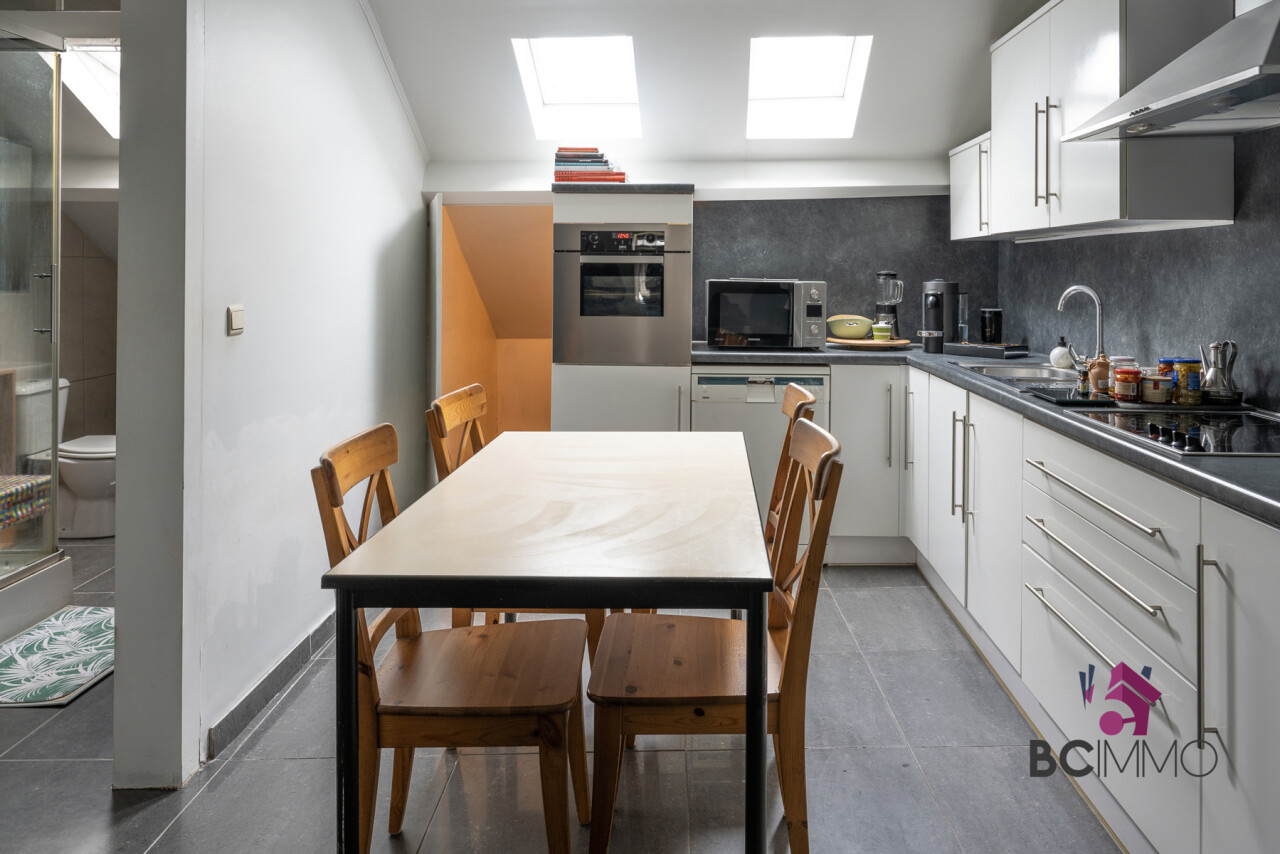 Op de 2de tweede verdieping vind je een living, een keuken, een badkamer en een tweede slaapkamer.